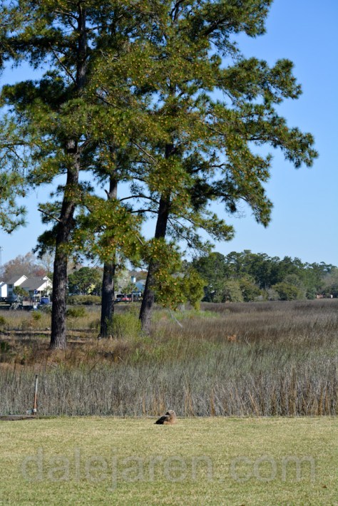 Scott found it early the next morning in our neighbor’s yard on the opposite side of our house from the neighbors near The ISLAND. As we look out to the marsh from our house, MiniMe is to the far right.