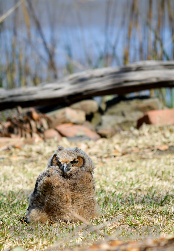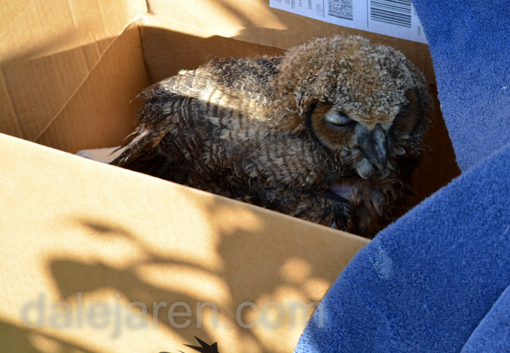 Great Horned Owls are the first of the nesting season for birds of prey. The Center got a call on Tuesday, March 17th, that there was a baby owl on the ground. And we got the call. Our first ‘mission’!