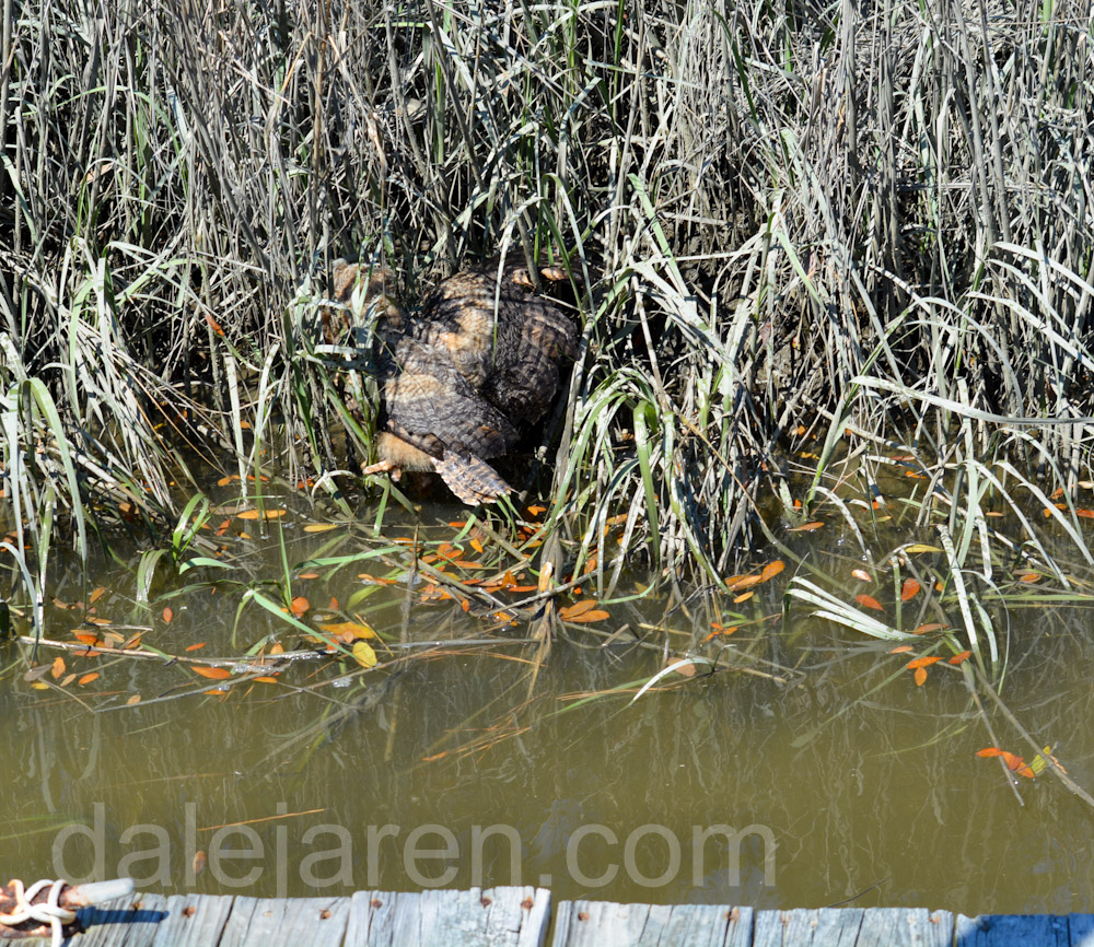 I would like to take a moment to explain that we have a whole group of neighbors along the marsh that have been on owl and owlet watch at all times of the day and night. We text each other, call, confer, commiserate, debate, search each others yards, walk and stalk the docks, borrow rescue tools from garden and boat sheds, lend support and binoculars and share experiences. And so far they have not called the folks in the white coats to come get me. Thank you. Thank you for your support, help, blog ideas, and humor – especially when things seem dire, your trust, your caring – for me and for the owlets.