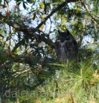 Happy Feet is almost all grown up with adult feathers and distinguishing ‘ear’ feathers. But it still relies on Mom & Dad for food. Just like a teenager! BTW I asked HF whatever happened to MiniMe and he had no comment. There is always a parent in close proximity. They are very difficult to spot from distance or from the ground looking up into the tall pines. We think this is Dad.