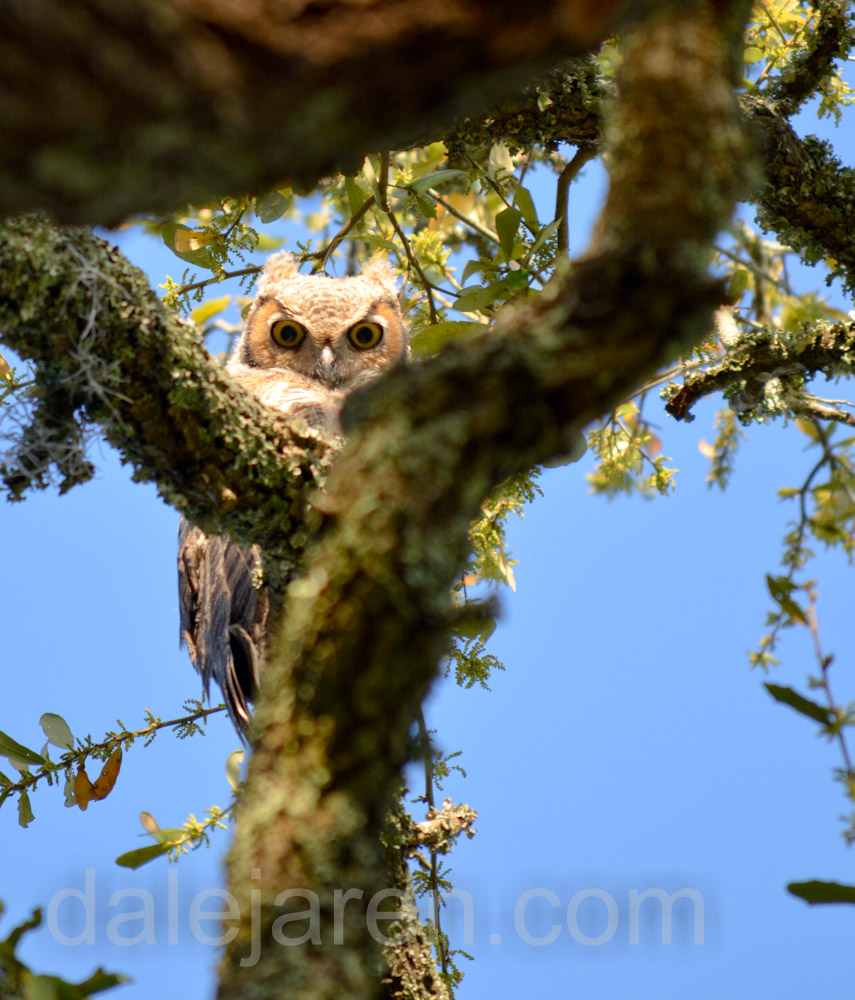 So life goes on. I will continue to update this blog with photos of the Great Horned Owlet. Maybe not considered an owlet anymore – a juvenile? I will have to look that up. Teenager?