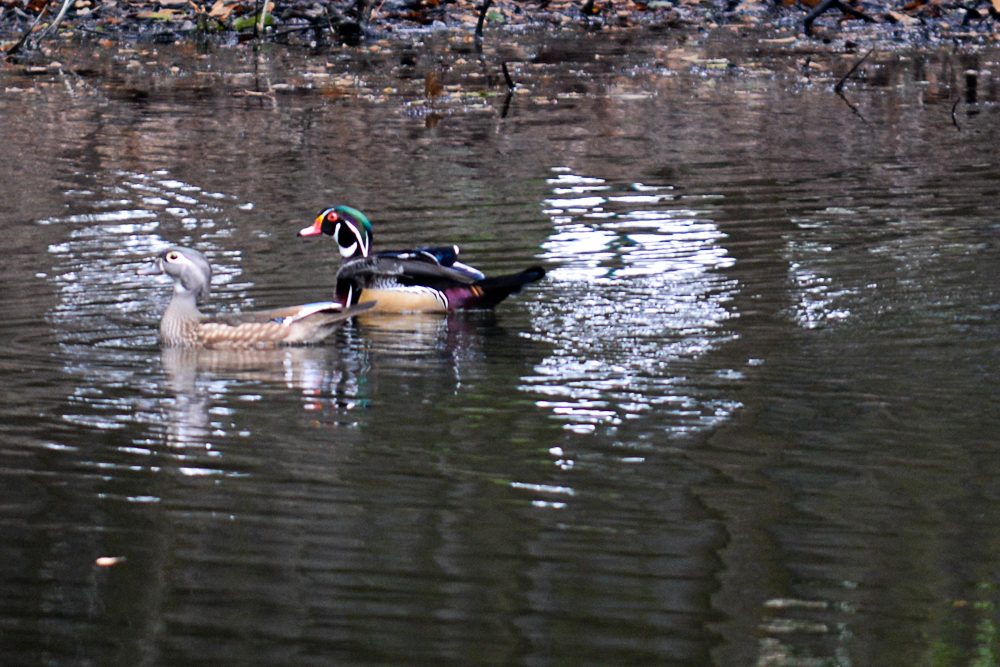 Several pairs of Wood Ducks have been vacationing in our neighbor’s pond. They are very skittish if I venture too close and immediately fly off returning only after I have left the scene. Therefore the photo is not great. I have to keep practicing to get the right settings on my camera to catch the fast shots.