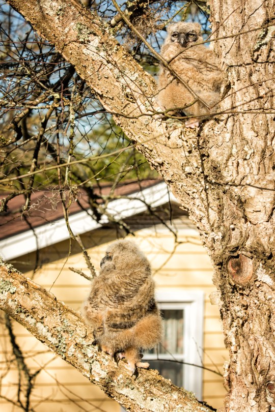 DSC_6099-Edit February 22, 2014 1000 × 1500 Owlets graduate from nestlings to branchers Back together again. Well close enough.