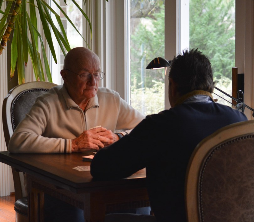 Mar 18 Dad and Scott playing cribbage