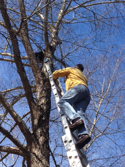 As I write this, 6 PM on February 22, 2014 we have just put one (or the other) of the owlets back in the tree for the fourth time!