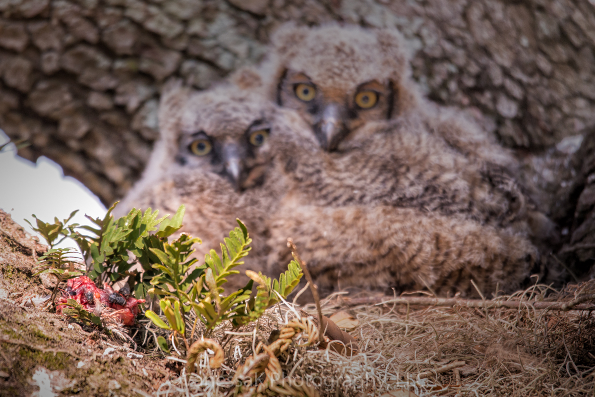 Kind of like that old game of Hide the Button – getting warmer, no getting cool, colder. Adult clacking means I am close. No warning sounds mean I am really cold. The area around the tree that elicits the most warning alerts from an adult owl is full of all kinds of interesting evidence: a headless baby squirrel, three adult squirrel tails, owl pellets and lots of white poop.