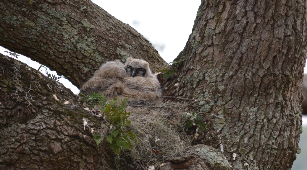 Great Horned Owls are the first of the nesting season for birds of prey. The Center got a call on Tuesday, March 17th, that there was a baby owl on the ground. And we got the call. Our first ‘mission’!